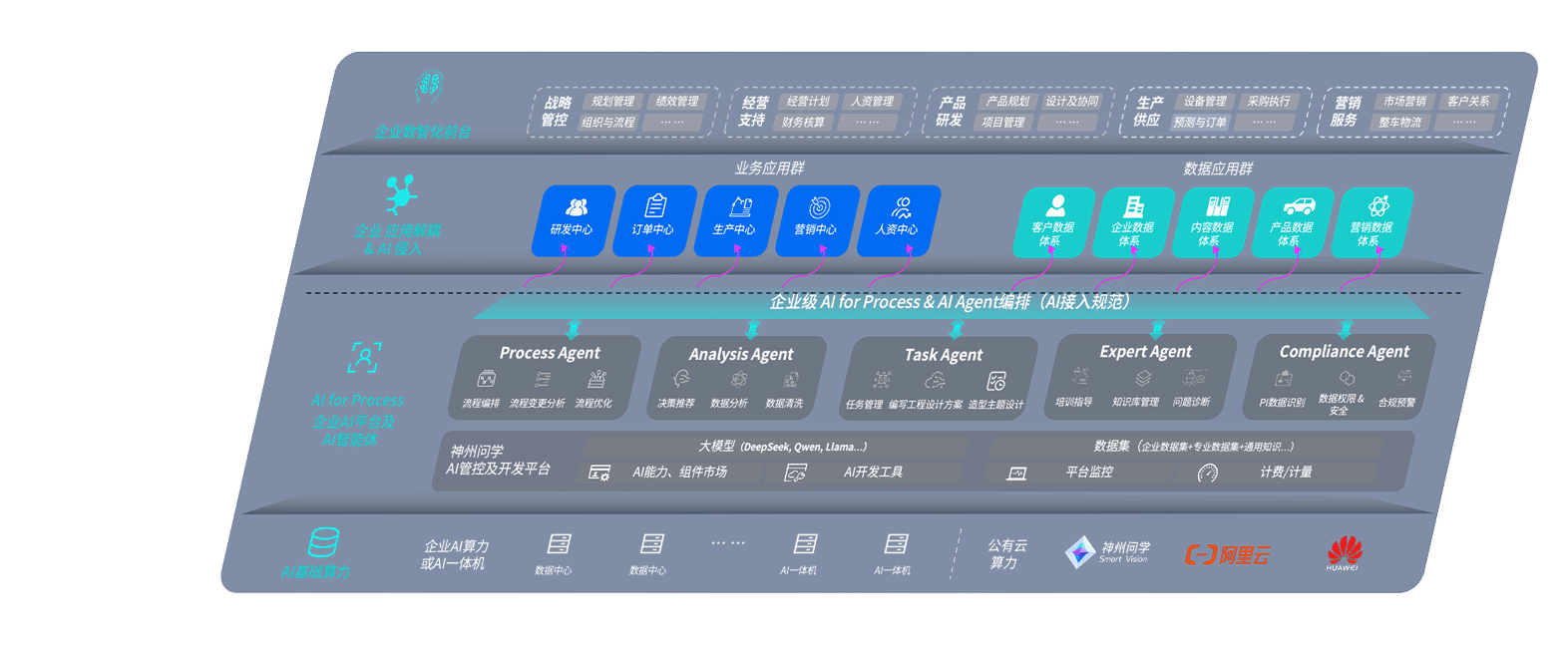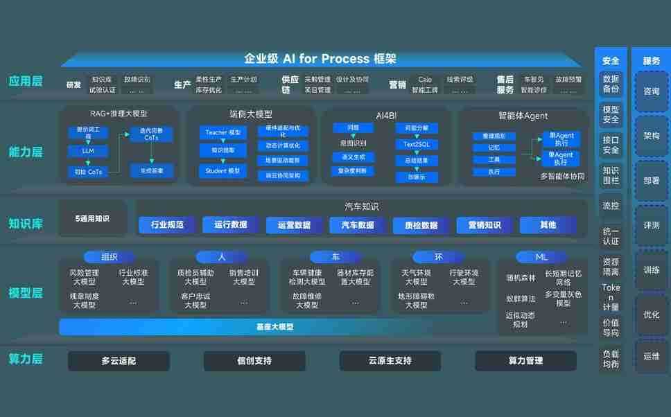 MANBETX问学智车解决方案是一套基于AI技术的汽车行业智能化系统,,,,覆盖从底层算力到顶层AI应用的全栈方案。。。。方案由算力层、、、、模型层和应用层组成:算力层,,,,方案支持多种一体机配置,,具备云端灵活部署、、多云适配以及动态优化计算资源的能力;模型层,,,MANBETX问学平台版提供了企业级AI应用一站式构建与管理平台,,,支持基于后训练强化技术的汽车企业专属模型的训练、、、、评测和运营;应用层,,,MANBETX问学DeepSeek版提供包括超级员工、、智能招采、、、、智能营销、、、、智能客服、、AI for BI等一系列解决方案,,,,可助力汽车行业实现数字化转型,,,,让管理更智能、、、、响应更敏捷。。